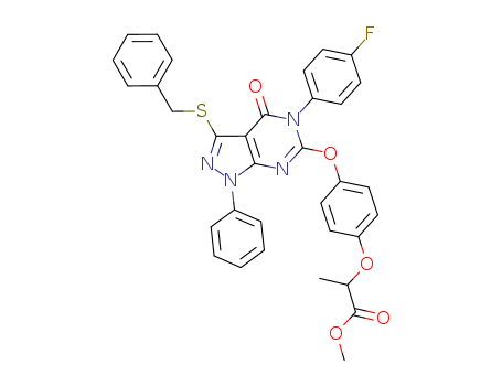 - Synonyms:3-benzylsulfanyl-5-(4-fluorophenyl)-6-[4-(1-methoxycarbonylethoxy)]phenoxy-1-phenylpyrazolo[3,4-d]pyrimidin-4-one