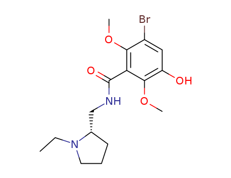 - Synonyms:Benzamide,3-bromo-N-[(1-ethyl-2-pyrrolidinyl)methyl]-5-hydroxy-2,6-dimethoxy-, (S)-; FLA873; NCQ 469