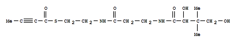 - Synonyms:Tetrolicacid, thio-, S-ester with 2,4-dihydroxy-N-[2-[(2-mercaptoethyl)carbamoyl]ethyl]-3,3-dimethylbutyramide(8CI); Butyramide,2,4-dihydroxy-N-[2-[(2-mercaptoethyl)carbamoyl]ethyl]-3,3-dimethyl-,S-tetrolate; NSC 169437; Tetrolyl pantetheine