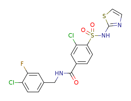 - Name: 3-chloro-4-[(1,3-thiazol-2-ylamino)sulfonyl]-N-[4-chloro-3-fluorobenzyl]benzamide