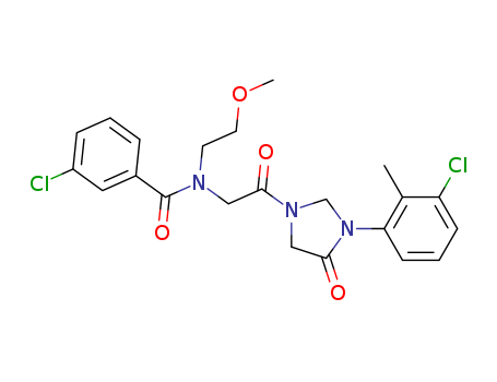 - Synonyms:3-chloro-N-{2-[3-(3-chloro-2-methyl-phenyl)-4-oxo-imidazolidin-1-yl]-2-oxo-ethyl}-N-(2-methoxy-ethyl)-benzamide
