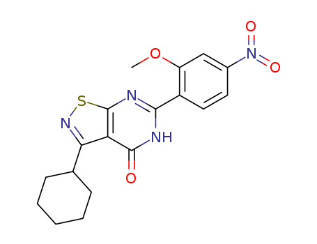 - Synonyms:3-cyclohexyl-6-(2-methoxy-4-nitrophenyl)[1,2]thiazolo[5,4-d]pyrimidin-4(5H)-one