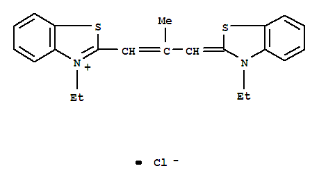 - Synonyms:3-Ethyl-2-[3-(3-ethyl-2-benzothiazolinylidene)-2-methylpropenyl]benzothiazoliumchloride (7CI); Benzothiazolium,3-ethyl-2-[3-(3-ethyl-2(3H)-benzothiazolylidene)-2-methyl-1-propenyl]-,chloride (9CI); Benzothiazolium,3-ethyl-2-[3-(3-ethyl-2(3H)-benzothiazolylidene)-2-methylpropenyl]-, chloride(4CI)
