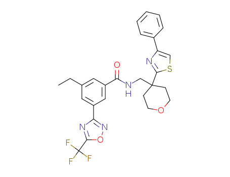 3-ethyl-N-((4-(4-phenylthiazol-2-yl)tetrahydro-2H-pyran-4-yl)methyl)-5-(5-(trifluoromethyl)-1,2,4-oxadiazol-3-yl)benzamide(1314890-73-7)