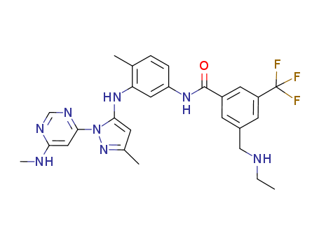 3-ethylaminomethyl-N-(4-methyl-3-(3-methyl-1-(6-methylaminopyrimidin-4-yl)-1H-pyrazol-5-ylamino)phenyl)-5-trifluoromethylbenzamide(1018471-76-5)