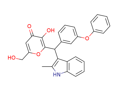 - Synonyms:3-hydroxy-6-(hydroxymethyl)-2-((2-methyl-1H-indol-3-yl)(3-phenoxyphenyl)methyl)-4H-pyran-4-one