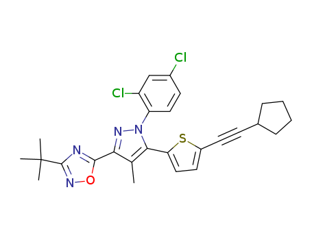 - Name: 3-tert-butyl-5-(5-(5-(cyclopentylethynyl)thiophen-2-yl)-1-(2,4-dichlorophenyl)-4-methyl-1H-pyrazol-3-yl)-1,2,4-oxadiazole