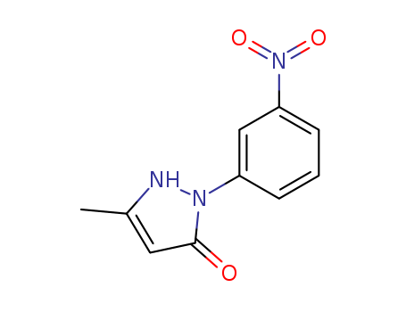 - Synonyms:5-methyl-2-(3-nitrophenyl)-1H-pyrazol-3(2H)-one;1-(3'-nitrophenyl)-3-methyl-5-pyrazolone;5-Methyl-2-(3-nitro-phenyl)-1,2-dihydro-pyrazol-3-one;5-Methyl-2-(3-nitro-phenyl)-1,2-dihydro-pyrazol-3-on;