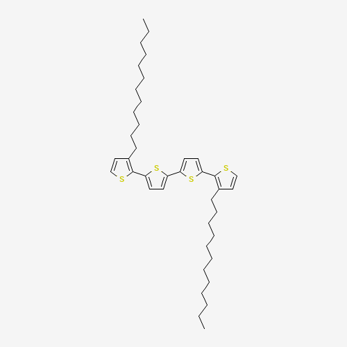 - Synonyms:162151-09-9;3,3'''-didodecyl-2,2':5',2'':5'',2'''-quaterthiophene;NSC686347;5,5mu-Bis(3-dodecyl-2-thienyl)-2,2mu-bithiophene;2-(3-dodecylthiophen-2-yl)-5-[5-(3-dodecylthiophen-2-yl)thiophen-2-yl]thiophene;2,2':5',2'':5'',2'''-Quaterthiophene, 3,3'''-didodecyl-;PQT-12;SCHEMBL85824;CHEMBL1971589;DTXSID20327781;MFCD10567015;NSC-686347;NCI60_031076;3,3'''-Didodecyl-2,2':5',2'':5'',2'''quaterthiophene;2-(3-dodecyl-2-thienyl)-5-[5-(3-dodecyl-2-thienyl)-2-thienyl]thiophene;3,3'''-Didodecyl-2,2':5',2'':5'',2'''-quaterthiophene, 97%;3-DODECYL-5'-{3'-DODECYL-[2,2'-BITHIOPHEN]-5-YL}-2,2'-BITHIOPHENE;510755-73-4