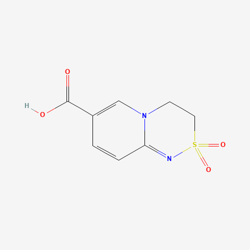 - Synonyms:852296-86-7;3,4-dihydropyrido[2,1-c][1,2,4]thiadiazine-7-carboxylic acid 2,2-dioxide;2,2-dioxo-3,4-dihydropyrido[2,1-c][1,2,4]thiadiazine-7-carboxylic acid;2,2-dioxo-3H,4H-2lambda6-pyrido[2,1-c][1,2,4]thiadiazine-7-carboxylic acid;DTXSID301140923;HMS1767P11;MFCD06655374;AKOS000118500;EN300-12607;SR-01000066608;SR-01000066608-1;Z85939127;2,2-dioxo-3H,4H-2lambda6-pyrido[2,1-c][1,2,4]thiadiazine-7-carboxylicacid;Pyrido[2,1-c][1,2,4]thiadiazine-7-carboxylic acid, 3,4-dihydro-, 2,2-dioxide;2,2-dioxo-3H,4H-2$l^{6},1,5000000-pyrido[2,1-c][1$l^{6},2,4]thiadiazine-7-carboxylic acid