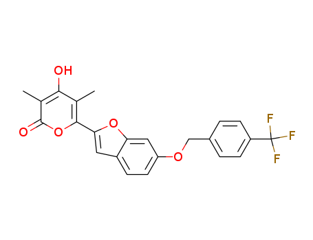 - Name: 3,5-dimethyl-4-hydroxy-6-(6-(4-(trifluoromethyl)benzyloxy)benzofuran-2-yl)-2H-pyran-2-one