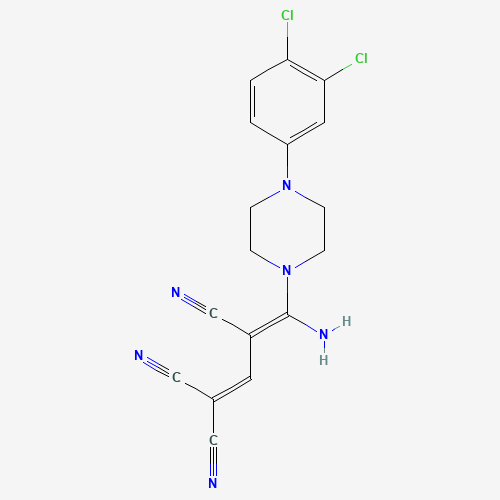 - Synonyms:338795-07-6;(3Z)-3-{amino[4-(3,4-dichlorophenyl)piperazin-1-yl]methylidene}prop-1-ene-1,1,3-tricarbonitrile;4-Amino-4-(4-(3,4-dichlorophenyl)piperazino)-1,3-butadiene-1,1,3-tricarbonitrile;(3Z)-4-amino-4-[4-(3,4-dichlorophenyl)piperazin-1-yl]buta-1,3-diene-1,1,3-tricarbonitrile;4-amino-4-[4-(3,4-dichlorophenyl)piperazino]-1,3-butadiene-1,1,3-tricarbonitrile;HMS573E19;AKOS005097591;6H-960;(Z)-4-amino-4-(4-(3,4-dichlorophenyl)piperazin-1-yl)buta-1,3-diene-1,1,3-tricarbonitrile
