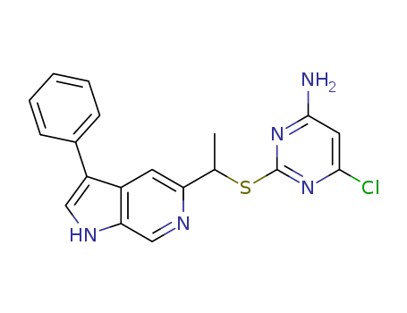 4-Amino-6-chloro-2-(1-(3-phenyl-1H-pyrrolo[2,3-c]pyridin-5-yl)ethyl)thio-pyrimidine(1102064-64-1)
