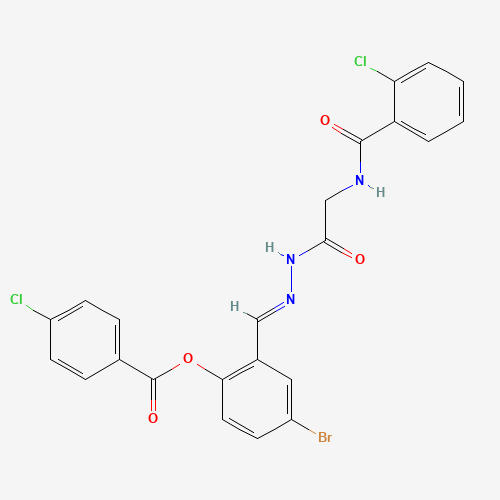 - Synonyms:AKOS024415807;4-BR-2-(2-(((2-CHLOROBENZOYL)AMINO)AC)CARBOHYDRAZONOYL)PHENYL 4-CHLOROBENZOATE