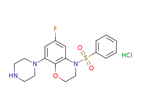 - Name: 4-Benzenesulfonyl-6-fluoro-8-piperazin-1-yl-3,4-dihydro-2H-benzo[1,4]oxazine, hydrochloride salt