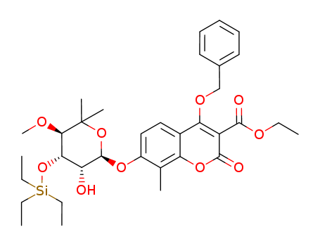 - Synonyms:4-Benzyloxy-7-((2R,3R,4S,5R)-3-hydroxy-5-methoxy-6,6-dimethyl-4-triethylsilanyloxy-tetrahydro-pyran-2-yloxy)-8-methyl-2-oxo-2H-chromene-3-carboxylic acid ethyl ester