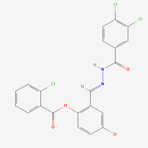- Synonyms:AKOS024415506;4-BROMO-2-(2-(3,4-DICHLOROBENZOYL)CARBOHYDRAZONOYL)PHENYL 2-CHLOROBENZOATE
