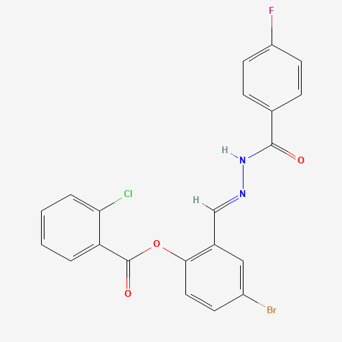 - Synonyms:4-bromo-2-[(Z)-{2-[(4-fluorophenyl)carbonyl]hydrazinylidene}methyl]phenyl 2-chlorobenzoate;AKOS024415550;4-BROMO-2-(2-(4-FLUOROBENZOYL)CARBOHYDRAZONOYL)PHENYL 2-CHLOROBENZOATE