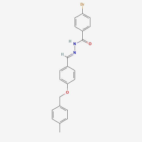 - Synonyms:STL582319;AKOS024416982;4-Bromo-N'-(4-((4-methylbenzyl)oxy)benzylidene)benzohydrazide;4-bromo-N'-[(E)-{4-[(4-methylbenzyl)oxy]phenyl}methylidene]benzohydrazide