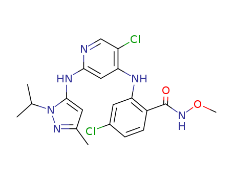 - Synonyms:4-Chloro-2-[(5-chloro-2-{[3-methyl-1-(1-methylethyl)-1H-pyrazol-5-yl]amino}-4-pyridinyl)amino]-N-(methyloxy)benzamide