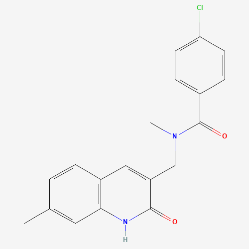 - Synonyms:DTXSID101137689;AKOS000631715;4-Chloro-N-[(1,2-dihydro-7-methyl-2-oxo-3-quinolinyl)methyl]-N-methylbenzamide;876709-23-8