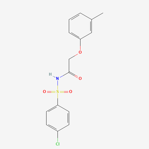 - Synonyms:ChemDiv3_006053;Oprea1_049240;Oprea1_767540;4-Chloro-N-(2-m-tolyloxy-acetyl)-benzenesulfonamide;DTXSID801197298;HMS1490D03;AKOS001689139;IDI1_023963;BRD-K86904176-001-01-1;N-[(4-Chlorophenyl)sulfonyl]-2-(3-methylphenoxy)acetamide;332886-37-0