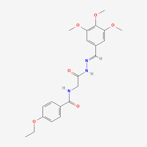 - Synonyms:AKOS024417508;4-Ethoxy-N-(2-oxo-2-(2-(3,4,5-trimethoxybenzylidene)hydrazinyl)ethyl)benzamide;769142-47-4;4-ethoxy-N-{2-oxo-2-[(2E)-2-(3,4,5-trimethoxybenzylidene)hydrazino]ethyl}benzamide