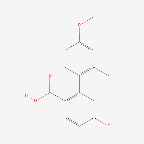 - Synonyms:1183066-20-7;4-FLUORO-2-(4-METHOXY-2-METHYLPHENYL)BENZOIC ACID;DTXSID10681243;MFCD12859457;AKOS005821283;5-Fluoro-4'-methoxy-2'-methyl[1,1'-biphenyl]-2-carboxylic acid