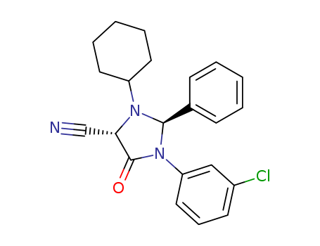 - 106689-91-2/4-Imidazolidinecarbonitrile, 1-(3-chlorophenyl)-3-cyclohexyl-5-oxo-2-phenyl-, trans-