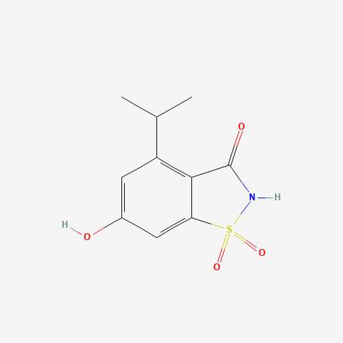 - Synonyms:4-isopropyl-6-hydroxysaccharin;6-hydroxy-4-isopropylsaccharin;SCHEMBL7012037;QBZUIAHJZRGHRJ-UHFFFAOYSA-N;DTXSID301150962;1,2-Benzisothiazol-3(2H)-one, 6-hydroxy-4-(1-methylethyl)-, 1,1-dioxide;142577-04-6