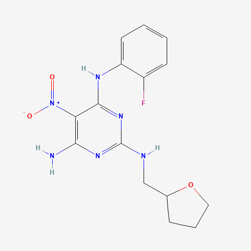 - Name: 4-N-(2-fluorophenyl)-5-nitro-2-N-(oxolan-2-ylmethyl)pyrimidine-2,4,6-triamine