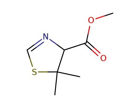 - Synonyms:methyl 5,5-dimethyl-2-thiazoline-4-carboxylate;Methyl 5,5-dimethyl-4,5-dihydro-1,3-thiazole-4-carboxylate;4-Thiazolecarboxylic acid,4,5-dihydro-5,5-dimethyl-,methyl ester;S,N-methanylylidene-penicillamine methyl ester;5,5-dimethyl-4,5-dihydro-thiazole-4-carboxylic acid methyl ester;