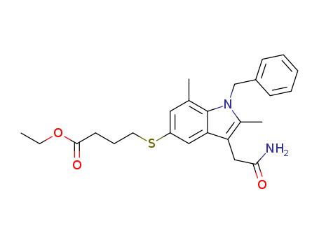 - Synonyms:4-(1-Benzyl-3-carbamoylmethyl-2,7-dimethyl-1H-indol-5-ylsulfanyl)-butyric acid ethyl ester