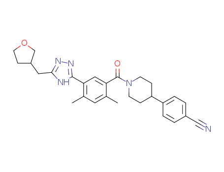 - Synonyms:4-(1-(2,4-dimethyl-5-(5-((tetrahydrofuran-3-yl)methyl)-4H-1,2,4-triazol-3-yl)benzoyl)piperidin-4-yl)benzonitrile