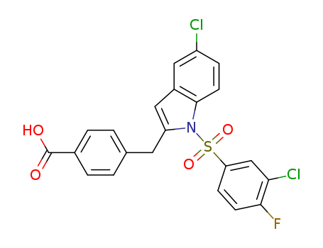 - Name: 4-[[1-[3-chloro-4-fluoro-phenylsulfonyl]-5-(chloro)-1H-indol-2-yl]methyl]benzoic acid