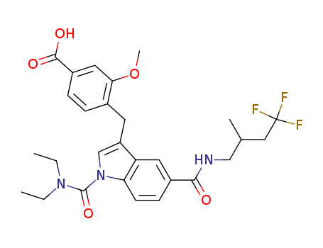 - Name: 4-[1-diethylcarbamoyl-5-(4,4,4-trifluoro-2-methyl-butylcarbamoyl)-1H-indol-3ylmethyl]-3-methoxy-benzoic acid