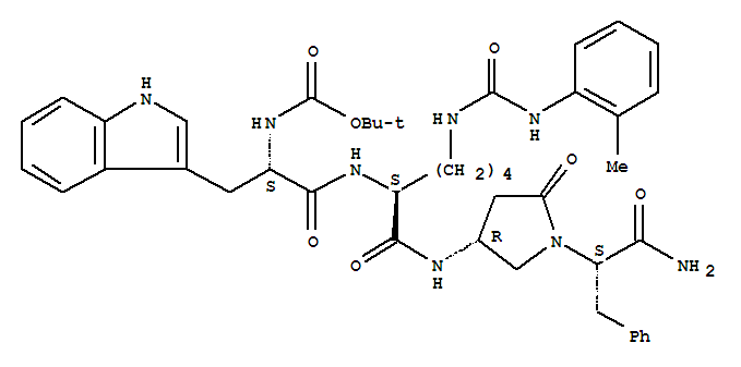 - Synonyms:4-((1,1-dimethylethoxy)carbonyl)-tryptophyl-lysyl(2-tolylaminocarbonyl)amino-1-(benzylcarbamoylmethyl)pyrrolidin-2-one