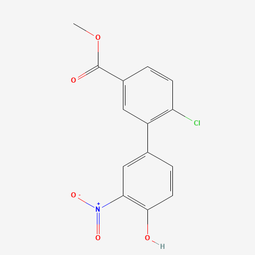 - Synonyms:1261933-11-2;4-(2-CHLORO-5-METHOXYCARBONYLPHENYL)-2-NITROPHENOL;DTXSID90686332;MFCD18315997;Methyl 6-chloro-4'-hydroxy-3'-nitro[1,1'-biphenyl]-3-carboxylate