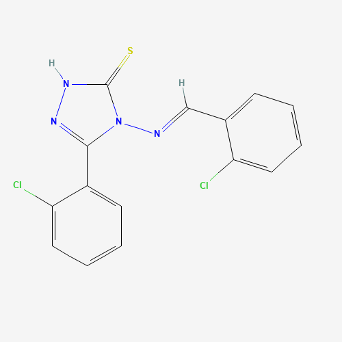 - Synonyms:4-((2-Chlorobenzylidene)amino)-5-(2-chlorophenyl)-4H-1,2,4-triazole-3-thiol;160284-98-0;AKOS002178576;5-(2-chlorophenyl)-4-{[(E)-(2-chlorophenyl)methylidene]amino}-4H-1,2,4-triazol-3-yl hydrosulfide