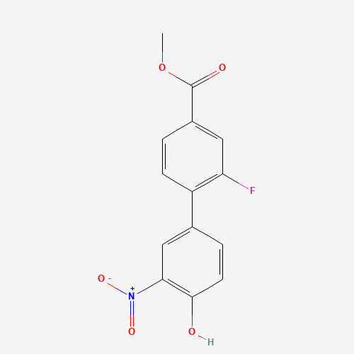 - Synonyms:1261957-79-2;4-(2-FLUORO-4-METHOXYCARBONYLPHENYL)-2-NITROPHENOL;DTXSID10686314;MFCD18315979;Methyl 2-fluoro-4'-hydroxy-3'-nitro[1,1'-biphenyl]-4-carboxylate