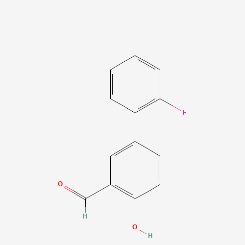 - Synonyms:1111129-29-3;4-(2-FLUORO-4-METHYLPHENYL)-2-FORMYLPHENOL;DTXSID50685083;MFCD11877752;2'-Fluoro-4-hydroxy-4'-methyl[1,1'-biphenyl]-3-carbaldehyde