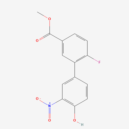 - Synonyms:1261888-66-7;4-(2-FLUORO-5-METHOXYCARBONYLPHENYL)-2-NITROPHENOL;DTXSID70686315;MFCD18315980;Methyl 6-fluoro-4'-hydroxy-3'-nitro[1,1'-biphenyl]-3-carboxylate