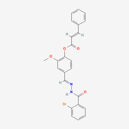 - Synonyms:AKOS024408180;4-(2-(2-BROMOBENZOYL)CARBOHYDRAZONOYL)-2-METHOXYPHENYL 3-PHENYLACRYLATE