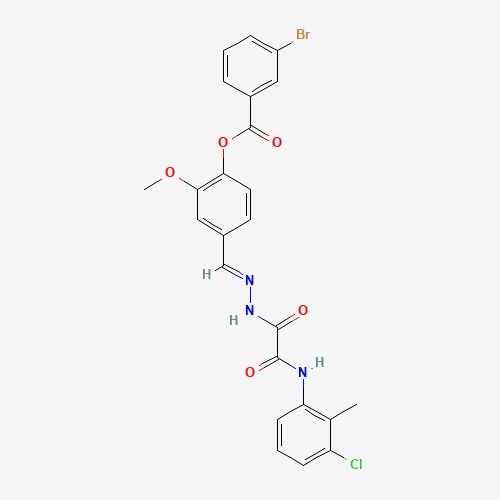 - Synonyms:AKOS024408189;4-(2-((3-CL-2-METHYLANILINO)(OXO)AC)CARBOHYDRAZONOYL)-2-MEO-PH 3-BROMOBENZOATE