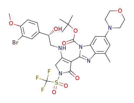 4-[2-(3-bromo-4-methoxy-phenyl)-2-hydroxy-ethylamino]-3-(1-tert-butyloxycarbonyl-4-methyl-6-morpholin-4-yl-1H-benzoimidazol-2-yl)-1-trifluoromethanesulfonyl-1,5-dihydro-pyrrol-2-one(667402-55-3)