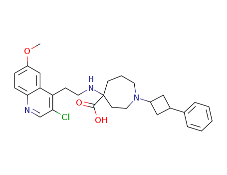 - Name: 4-{[2-(3-chloro-6-methoxyquinolin-4-yl)ethyl]amino}-1-(3-phenylcyclobutyl)azepane-4-carboxylic acid