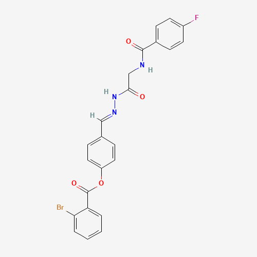 - Synonyms:AKOS024415061;4-(2-(((4-FLUOROBENZOYL)AMINO)ACETYL)CARBOHYDRAZONOYL)PHENYL 2-BROMOBENZOATE
