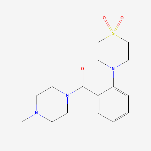 - Synonyms:860610-39-5;4-[2-(4-methylpiperazine-1-carbonyl)phenyl]-1lambda6-thiomorpholine-1,1-dione;4-{2-[(4-methylpiperazino)carbonyl]phenyl}-1lambda~6~,4-thiazinane-1,1-dione;[2-(1,1-dioxo-1,4-thiazinan-4-yl)phenyl]-(4-methylpiperazin-1-yl)methanone;DTXSID401145752;AKOS005076303;10T-0006;[2-(1,1-Dioxido-4-thiomorpholinyl)phenyl](4-methyl-1-piperazinyl)methanone