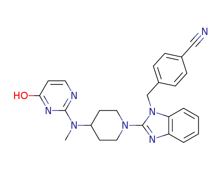 - Synonyms:Benzonitrile,4-[[2-[4-[(1,4-dihydro-4-oxo-2-pyrimidinyl)methylamino]-1-piperidinyl]-1H-benzimidazol-1-yl]methyl]-(9CI)