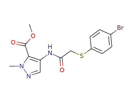 - Synonyms:4-[2-(4-bromo-phenylsulfanyl)-acetylamino]-2-methyl-2H-pyrazole-3-carboxylic acid methyl ester